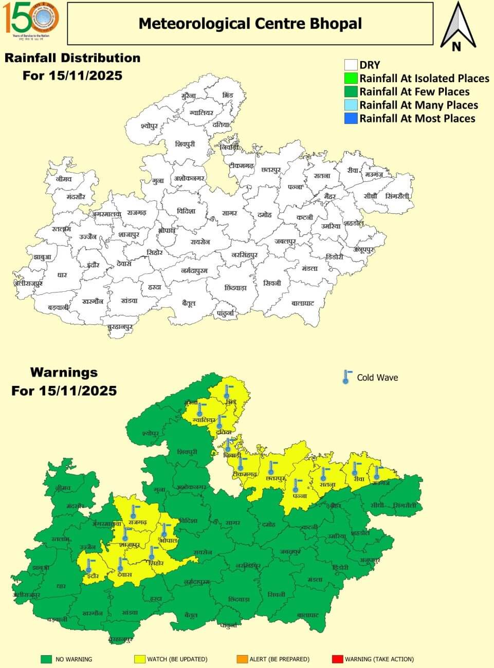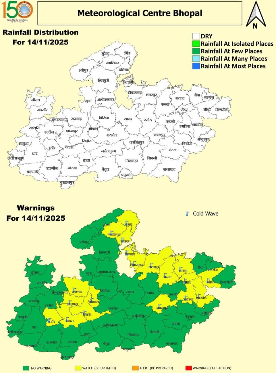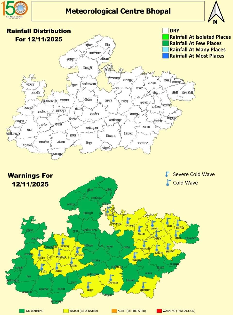 - सबसे ठंडा शहर राजगढ़ रहा, जहां पारा 8 डिग्री तक गिर गया।