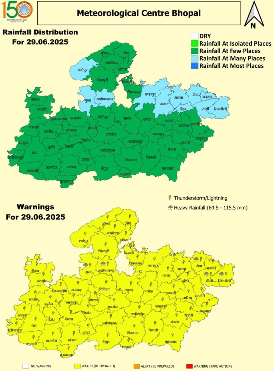 रविवार 29 जून: रीवा, सीधी, सिंगरौली, गुना, अशोकनगर में भारी बारिश ।भोपाल, इंदौर, ग्वालियर, उज्जैन, जबलपुर में बारिश होने का अलर्ट ।