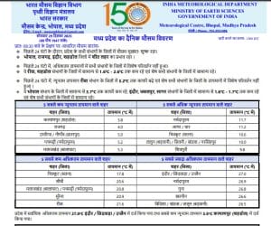 - पचमढ़ी, मलाजखंड, मंडला, खजुराहो, रायसेन, दमोह, छिंदवाड़ा, टीकमगढ़, दतिया, गुना, बैतूल, सागर, सीधी और सतना में तापमान 10 डिग्री से नीचे रहा।