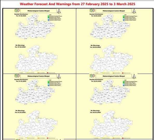 MP Weather Update : मार्च के पहले सप्ताह में मध्य प्रदेश के मौसम में बदलाव देखने को मिलेगा। इस दौरान नए वेदर सिस्टम के सक्रिय होने से फिर बादल बारिश की स्थिति बनेगी। आज शुक्रवार को प्रदेश के सभी जिलों में मौसम शुष्क रहने का अनुमान है। 2-4 दिनों तक यह स्थिति बनी रह सकती है