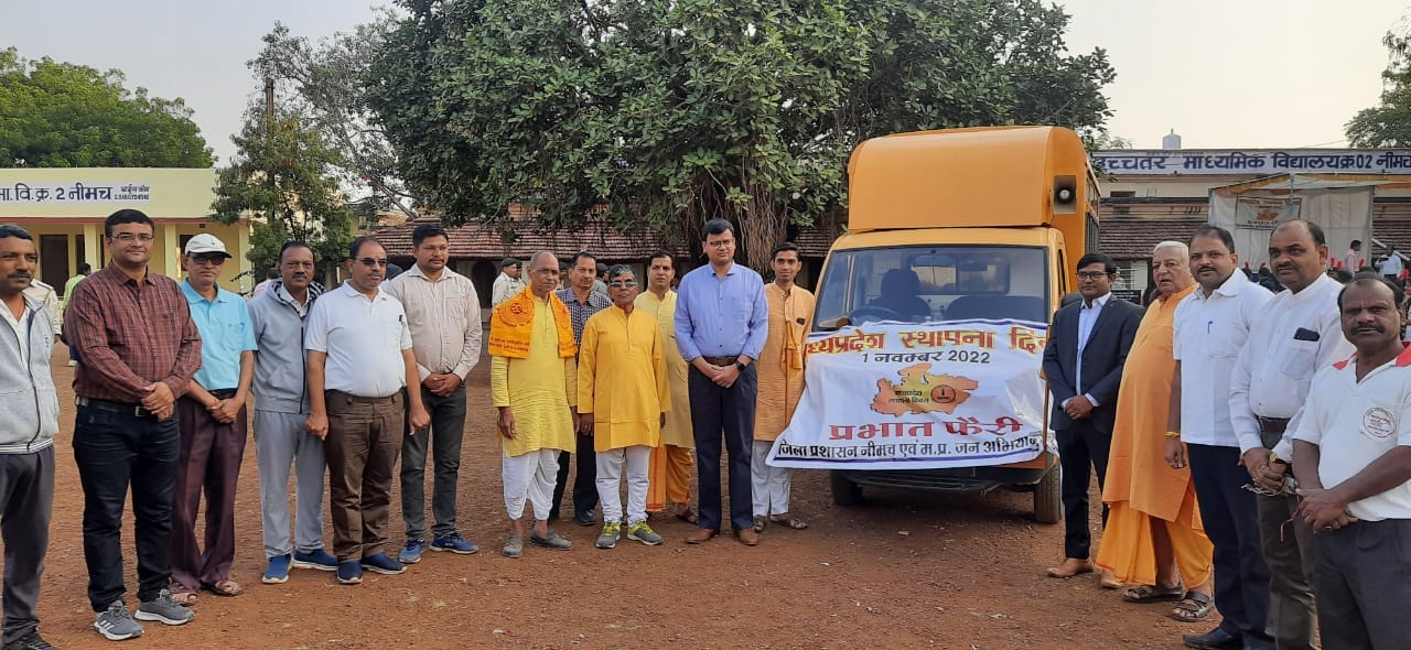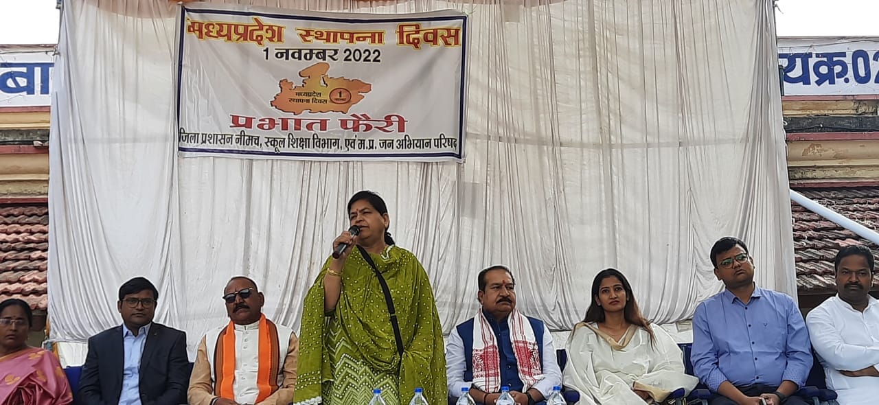 नीमच, कमलेश सारडा | आज मध्य प्रदेश का 67वां स्थापना दिवस है। इस अवसर पर आज नीमच में जिला प्रशासन, जन अभियान परिषद एवं स्कूल शिक्षा विभाग द्वारा संयुक्त रूप से क्रमांक 2 विद्यालय से प्रभात फैरी का आयोजन किया गया। जिसमें जिले के प्रभारी मंत्री उषा ठाकुर, विद्यायक दिलीप सिंह परिहार, जिला पंचायत अध्यक्ष सज्जन सिंह चौहान, भाजपा जिला अध्यक्ष पवन पाटीदार, नगर पालिका अध्यक्ष स्वाति चोपड़ा, कलेक्टर मयंक अग्रवाल समेत सीईओ जिला पंचायत गुरुप्रसाद आदि उपस्थित रहे। इस दौरान प्रभारी मंत्री ने हरी झंडी दिखाकर रैली का शुभारंभ किया जो कि शहर के विभिन्न मार्गों से होती हुई पुनः क्रमांक 2 स्कूल में पहुँची, जहाँ नशामुक्ति अभियान अंतर्गत शपथ कार्यक्रम के साथ इसका समापन हुआ।