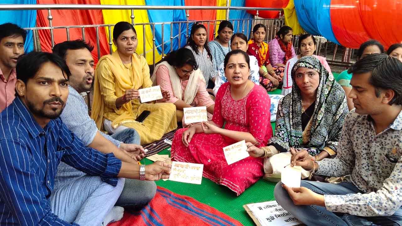Neemuch News : नीमच जिले के एनएचएम संविदा स्वास्थ्य अधिकारियों कर्मचारियों की क्रमिक भूख हड़ताल 18 अप्रैल से अपनी प्रमुख मांगों के साथ जारी है। पूर्व में भी दिसम्बर जनवरी माह में ये संविदा कर्मी हड़ताल पर गए थे, सरकार के आश्वासन पर हडताल को 1 माह तक स्थगित कर दिया गया था। परंतु 3 माह बाद भी सरकार और एनएचएम विभाग द्वारा कोई ठोस कार्रवाई नहीं होने पर संविदा कर्मियों को पुनः हड़ताल का रुख लेना पड़ा।