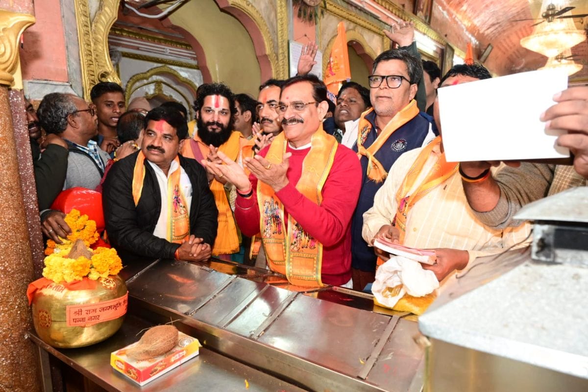 Lord Jugal Kishore invited to visit Ram temple : इन दिनों पूरा देश राममय है , प्रभु श्रीराम में आस्था रखने वाले भक्तों को अब केवल 22 जनवरी का इंतजार है जब वे अपनी आँखों से रामलला की प्राण प्रतिष्ठा होते और उन्हें मंदिर में स्थापित होते देखेंगे, कार्यक्रम में शामिल होने के लिए पीले अक्षत (चावल) बांटे जा रहे हैं, आमंत्रण दिए जा रहे हैं, इसी क्रम में भाजपा प्रदेश अध्यक्ष वीडी शर्मा आज पन्ना पहुंचे और भगवान जुगल किशोर जी को राम मंदिर में आने का निमंत्रण दिया।