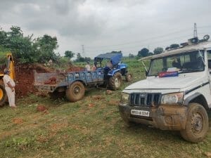 जानकारी के अनुसार ये ट्रालियों में जेसीबी के माध्यम से मुरम भरी जा रही थी। मामले में पुलिस ने दो ट्रेक्टर चालकों को गिरफ्तार कर मशीनरी जब्त की है वहीं ट्रेक्टर मालिक मौके से फरार हो गया। थाना प्रभारी तिलवारा राहुल सैयाम ने बताया कि ग्राम ललपुर में जेसीबी से अवैध रूप से मुरूम उत्खनन कर टैक्टर टालियों में लोड की जा रही है। जिसके बाद दबिश दी गयी तो एक जेसीबी मशीन मुरूम उत्खनन करते हुये पाया गया। साथ ही पास में खड़ी 2 टैक्टर ट्रालियों में जेसीबी के माध्यम से मुरूम भरी जा रही थी। मामले पर जेसीबी चालक पुलिस को आता देख भाग गया जिसे घेराबंदी कर पकड़ लिया। वहीं एक ट्रैक्टर चालक भाग गया।