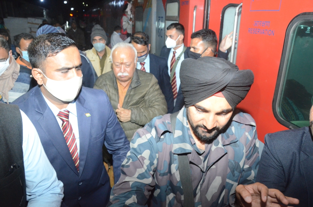 ग्वालियर, अतुल सक्सेना। राष्ट्रीय स्वयंसेवक संघ प्रमुख डॉ मोहन भागवत ( RSS Chief Dr. Mohan Bhagwat) देर रात ग्वालियर पहुंचे। वे यहाँ राष्ट्रीय स्वयंसेवक संघ (RSS) मध्यभारत प्रांत के प्रांतीय स्वर साधक संगम (घोष शिविर) (Swar Sadhak Sangam,Ghosh Shivir) में मौजूद रहेंगे और आज शनिवार शाम स्वदेश के स्वर्ण जयंती कार्यक्रम में शामिल होंगे, स्वदेश के कार्यक्रम में मुख्यमंत्री शिवराज सिंह चौहान(CM Shivraj Singh Chauahn) भी शामिल होंगे।