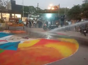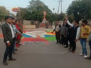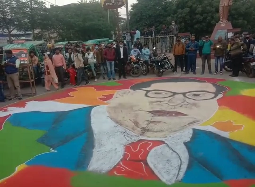 दरअसल डॉ भीमराव अंबेडकर की पुण्यतिथि के मौके पर सोमवार को अखिल भारतीय विद्यार्थी परिषद ने बाबा साहब को श्रद्धांजलि देने के लिए फूलबाग चौराहे पर 30 फिट की एक रंगोली बनाई थी। रंगोली में बाबा साहब की प्रतिकृति बनाई थी।