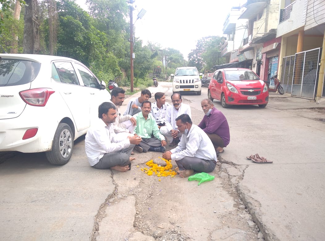 सीहोर, अनुराग शर्मा। शनिवार को कांग्रेस कार्यकर्ताओं ने सड़क पर हुए गड्ढों में बैठकर अनूठे तरीके से प्याज लहसून मिर्च नींबू के साथ पूजन अर्चन किया। इसी के साथ भगवान से इस रोड की सलामती और ईश्वर से अब आगे और रोड नहीं धंसने के लिए प्रार्थना की। कांग्रेस कार्यकर्ताओं ने हर बुरी नजर और हर बला से सड़क को बचाने के लिए प्याज लहसुन मिर्च नींबू से टोटका किया।