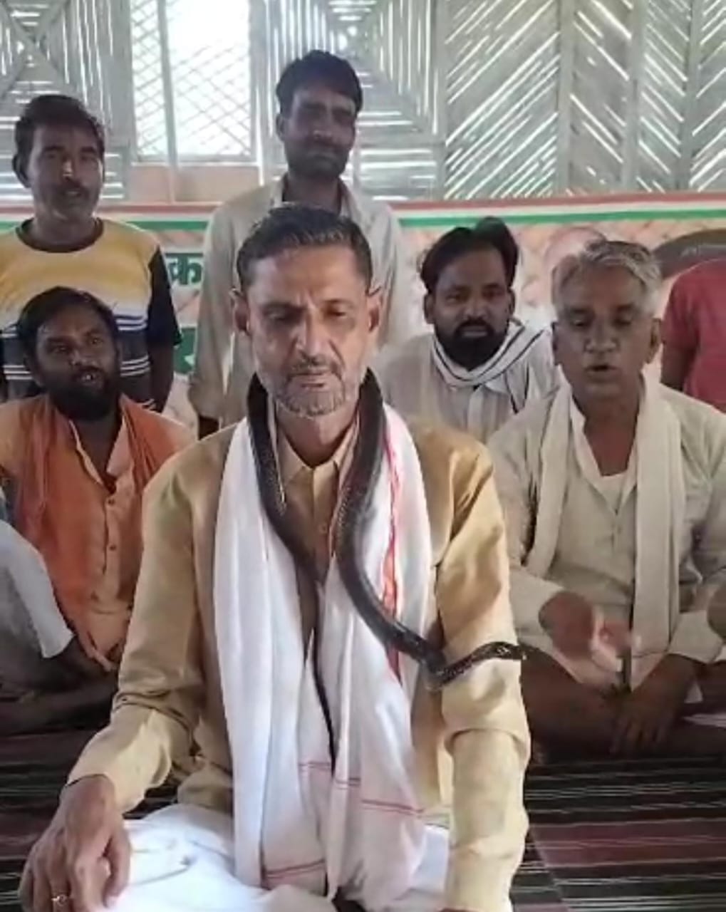 Sheopur MLA Babu Jandel : श्योपुर के कांग्रेस विधायक बाबू जंडेल का एक वीडियो सामने आया है इस वीडियो में विधायक जंडेल गले में सांप डालकर बैठे है उनके आसपास लोग भी मौजूद है, वीडियो विधायक बाबू जंडेल के उनके जन्मदिन का बताया जा रहा है। कांग्रेस विधायक जंडेल का शुक्रवार को जन्मदिन था। दरअसल विधायक को बधाई देने बड़ी संख्या में लोग उनके घर पहुँच रहे थे इसी बीच एक सपेरा भी वहाँ पहुंचा, सपेरे के पिटारे में एक काला सांप भी था, जिसे देखकर कांग्रेस विधायक ने उसका सांप पिटारे से बाहर निकाल लिया और फिर उसे अपने गले में डाल लिया।
