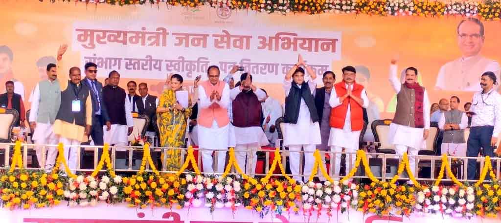 Shivpuri Chief Minister Public Service Campaign : शिवपुरी संभाग स्तरीय हितग्राही सम्मेलन में शामिल होने के लिए आए प्रदेश के मुख्यमंत्री शिवराज सिंह चौहान ने मंच से दो अफसरों को सस्पेंड कर दिया है। साथ ही दो अफसरों के काम की तारीफ भी की। उन्होंने कहा- अच्छा काम करो, बेहतर काम करो, मामा गले लगाएगा। ये भी कहा कि शिवपुरी नगर पालिका को नगर निगम बनाएंगे।