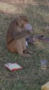 इस मनचले बंदर का 17 नवंबर को एक वीडियो सामने आया था। जहां यह रोड किनारे बैठकर शराब पी रहे दो युवकों के पास पहुंचा और उन्हें डरा कर भगा दिया। इसके बाद गिलास में भरी शराब खुद पी ली और पास में रखा नमकीन भी खा लिया। लोगों ने शराब पीते हुए इस बंदर का वीडियो बना लिया था।