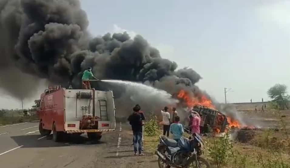 शिवपुरी : टायर से भरे चलते ट्रक में लगी आग #fireaccident #MPNews pic.twitter.com/QEgOYRIk3c