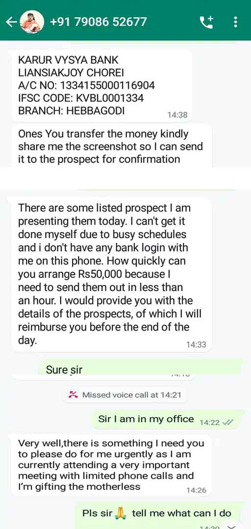 बता दें कि शिवपुरी जिले में मंगलवार सुबह कुछ लोगों के व्हाट्सएप पर मैसेज आया, मुझे 50 हजार की जरूरत है, इस अकाउंट नंबर पर पैसे भेज दें। नंबर किसी के पास सेव नहीं था। प्रोफाइल देखी तो उसपर नाम लिखा था, अक्षय कुमार सिंह। फोटो भी शिवपुरी कलेक्टर की। इसको देखकर लोग हैरत में पड़ गए। कलेक्टर ने पैसे मांगे है…ये सोच के शायद किसी ने दे भी दिया हो। हालांकि, कितने लोगों ने खाते में पैसे भेजे हैं, इसकी जानकारी नहीं है। अगर ऐसे ही किसी अकाउंट से कोई मैसेज आपके पास भी आया है, तो सावधान हो जाइए। यह कोई बदमाश कलेक्टर अक्षय कुमार के नाम से लोगों से पैसे मांग रहा है। ये व्हाट्सएप नंबर फर्जी है।