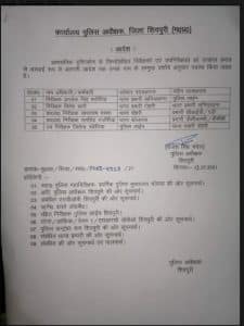 शिवपुरी, शिवम पाण्डेय। शिवपुरी पुलिस अधीक्षक राजेश सिंह चंदेल ने फेरबदल करते हुए 4 निरीक्षकों 1 उपनिरीक्षक की तबादला (Transfer) सूची जारी की है। कार्यालय पुलिस अधीक्षक से जारी की गई सूची में 4 निरीक्षकों 1 उप निरीक्षक अधिकारी इधर से उधर किये है।