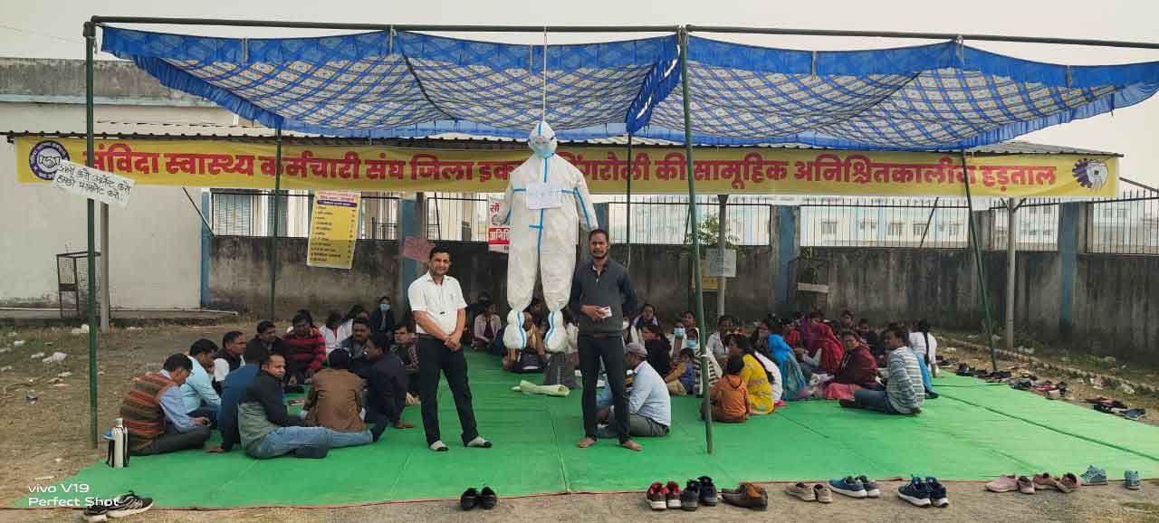 संविदा स्वास्थ्य कर्मचारी संघ के जिलाध्यक्ष मृगेन्द्र सिंह ने मीडिया को जानकारी देते हुए बताया कि म.प्र. के लगभग 32000 संविदा स्वास्थ्य कर्मचारी कार्यरत्त हैं जो स्वास्थ्य विभाग को लगभग 15 से 18 वर्षो से संविदा में ही अपनी सेवाएं दे रहे हैं अब स्थिति यह हो गई है उम्र अधिक हो जाने के कारण किसी और विभाग में फार्म भरने लायक भी नहीं हैं। वर्ष 2013, 2014 एवं 2018 में संविदा कर्मचारियों द्वारा अपने हक के लिए हड़ताल किया गया किन्तु शासन द्वारा 42 दिन की हड़ताल के उपरांत मध्यप्रदेश शासन द्वारा 5 जून 2018 को संविदा स्वास्थ्य कर्मचारियों के लिए नियमित कर्मचारियों के वेतनमान का 90 प्रतिशत मानदेय दिये जाने हेतु नीति बनाई गई। जिसकी फाईल आज तक दफ्तरों का चक्कर काटती रही किन्तु आज तक यह नीति लागू नहीं हो सकी।