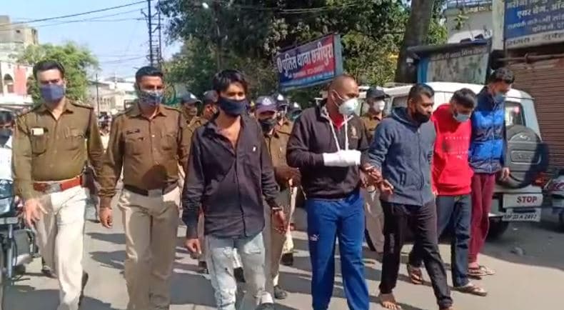 शातिर गुंडों का आज छत्रीपुरा थाना क्षेत्र में स्थित बीजेपी नेता के घर के आस पास जुलूस निकाला ताकि लोगों में गुंडों का खौंफ कम हो और बदमाशों के हौंसले भी पस्त हो सके। जुलूस निकाले जाने के दौरान हमलावर गुंडे शर्म से पानी पानी नजर आए। फिलहाल, पुलिस अब एक अभियान के तहत अन्य बदमाशों पर नकेल कस रही है।