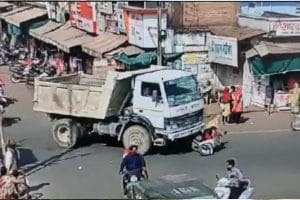परीक्षा कराकर अपनी स्कूटी से घर जा रही महिला निधि मिश्रा को एक डम्फर ने पीछे से टक्कर मारकर घायल कर दिया। मात्र 2 इंच की दूरी से डम्फर के अगला टायर के नीचे कुचलने से निधि मिश्रा बच गई। जिसे देखकर यही कहा जा सकता हज की मौत टक से छूकर निकल गई। उक्त घटना का वीडियो बायरल हुआ है। शिक्षक निधि मिश्रा के पति राजीव मिश्रा ने जानकारी देते हुए बताया कि उनकी पत्नी सरकारी शिक्षक हैं। वह जब परीक्षा कराकर अपनी स्कूटी से घर जा रही थी तभी अस्पताल चौराहे पर पीछे से आ रहे डम्फर ने उन्हें टक्कर मार दी। जिससे वह स्कूटी समेत गिर गई और डम्फर के नीचे आ गई। हालांकि गनीमत यह रही कि डम्फर चालक ने ब्रेक लगा दिया लेकिन तब तक निधि मिश्रा डम्फर के नीचे टायर तक पहुंच गई थी। सिर्फ 2 इंच की दूरी से वह टायर के नीचे आने से बच गई। उक्त घटना पर कोतवाली पुलिस ने डम्फर को जप्त कर मामला दर्ज करने की कार्यवाही की है।