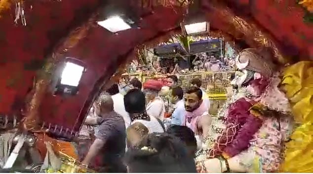 उज्जैन,डेस्क रिपोर्ट। 12 ज्योतिर्लिंगों में से एक उज्जैन के महाकालेश्वर मंदिर में आज बाबा महाकाल (baba mahakal) की दूसरी शाही सवारी निकाली गई। बाबा महाकाल श्रावण मास में प्रजा का हाल जानने के लिए गर्भ गृह से निकले। महाकाल की सवारी गाजे-बाजे और धूमधाम के साथ निकाली गई। राजाधिराज के दर्शन पाकर महाकाल के भक्त खुशी से झूम उठे। बता दें कि बाबा महाकाल ने चंद्रमौलेश्वर रूप में अपने भक्तों को दर्शन दिए। इस दौरान कलेक्टर आशीष सिंह ने पूजा-अर्चना की। पुलिस ने महाकाल को गार्ड ऑफ ऑनर दिया। इसके बाद सवारी शुरू हुई। थोड़ी देर में सवारी शिप्रा नदी के तट पर पहुंचेगी। यहां महाकाल की पूजा-अर्चना की जाएगी। पूर्व मुख्यमंत्री उमा भारती भी दर्शन के लिए उज्जैन पहुंची हैं।