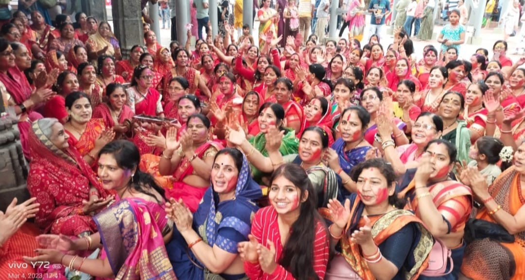 होली से 2 दिन पहले मंदिर परिसर में भजनों पर झूमती महिलाओं ने जमकर एक दूसरे को गुलाल लगाया। इस दौरान दर्शन करने पहुंचे श्रद्धालु भी फाग उत्सव की धुन में रमते हुए दिखाई दिए।