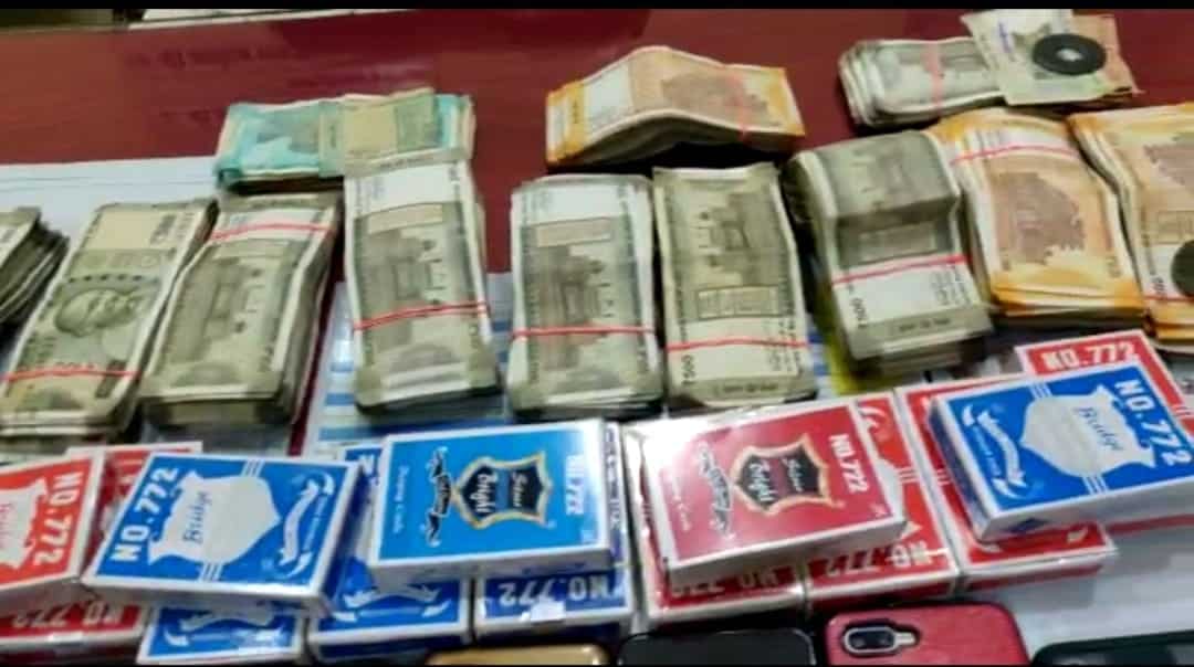 उज्जैन, डेस्क रिपोर्ट। उज्जैन की नागदा पुलिस ने देर रात चंबल मार्ग पर एक घर में छापा मारकर 44 लोगों को जुआ खेलते गिरफ्तार किया हैं। पुलिस ने जुंआरियों से 5 लाख 91 हजार 330 रुपए और 40 मोबाइल जब्त किए। चंबल मार्ग स्थित नवाब खान अपने घर पर जुआ खिला रहा था। नवाब ने अपने घर के आस-पास चौकीदार खड़े कर रखे थे। जिससे पुलिस आने की पहले ही मिल जाती थी। सूचना रात 1:30 बजे पुलिस ने पूरी तैयारी के साथ छापा मारा। जिसमें 40 जुआरियों में उज्जैन, नागदा, जावरा, रतलाम, खाचरोद, उन्हेल और महिदपुर के जुआरी गिरफ्तार हुए हैं।
