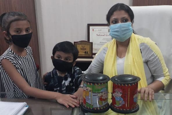 दरअसल, पटी गली में रहने वाले दो स्कूली बच्चे आस्था पाराशर व संयम पाराशर ने अपनी गुल्लक मुरैना कलेक्टर को डोनेट की साथ में ही बच्चों ने बताया कि यह राशि उन्होंने गरीब लोगों को भोजन मिल सके इसके लिए दान की है क्योंकि लॉक डाउन की समय लोगों को काम नहीं मिल रहा है इसको चलते बहुत से परिवार ऐसे हैं जिनको भोजन के लिए भी परेशानी का सामना करना पड़ रहा है| इसी को देखते हुए इन दो बच्चों ने अपनी अपनी गुल्लक को दान में दिया हैं मुरैना कलेक्टर श्रीमती प्रियंका दास ने खुश होकर बच्चों को चॉकलेट्स और उनके परिवार वालों को शुभकामनाएं दी ।