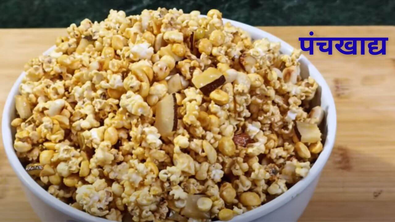 पंचखाद्य विशेषतः कोकणात बनवला जाणारा प्रसादाचा पदार्थ आहे. यामध्ये अनेक पौष्टिक गोष्टी एकत्रित करून बनवण्यात येते. अलीकडे अनेक स्त्रिया कामानिमित्त घराबाहेर असतात, त्यामुळे घरी कमी वेळेत प्रसाद बनवायचे असेल तर पंचखाद्य अगदी उत्तम आहे. यामध्ये अनेक पौष्टिक गुणधर्म असतात. आज आपण पंचखाद्य बनवण्याची रेसिपी पाहणार आहोत.