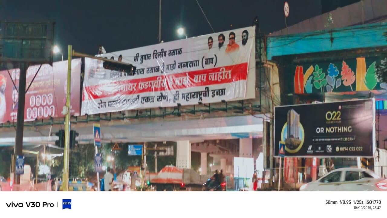 धाराशिव येथे नितेश राणे यांनी केलेल्या वक्तव्यानंतर ठाकरे गटाने ठाण्यात बॅनरबाजी केली होती. शिवसेना ठाकरे गटाकडून नितेश राणे यांना डिवचण्यात आले आहे. ठाण्यातील तीन नाका परिसरात हा बॅनर लावण्यात आला होता. या बॅनरमुळे राजकीय वर्तुळात चर्चांना उधाण आले आहे. बॅनरवर दोन वाघांनी एकत्र येणे महाराष्ट्राची गरज असल्याचा देखील उल्लेख करण्यात आला आहे. विशेष म्हणजे “देवेंद्र गंगाधर फडणवीस हे माझे बाप नाही…मी तुषार दिलीप रसाळ… कैलासवासी दिलीप पंढरीनाथ रसाळ हे माझे जन्मदाता बाप” असा बॅनरवर उल्लेख करण्यात आला आहे. यातून राणेंवर अप्रत्यक्ष टिका करण्य़ात आली आहे.