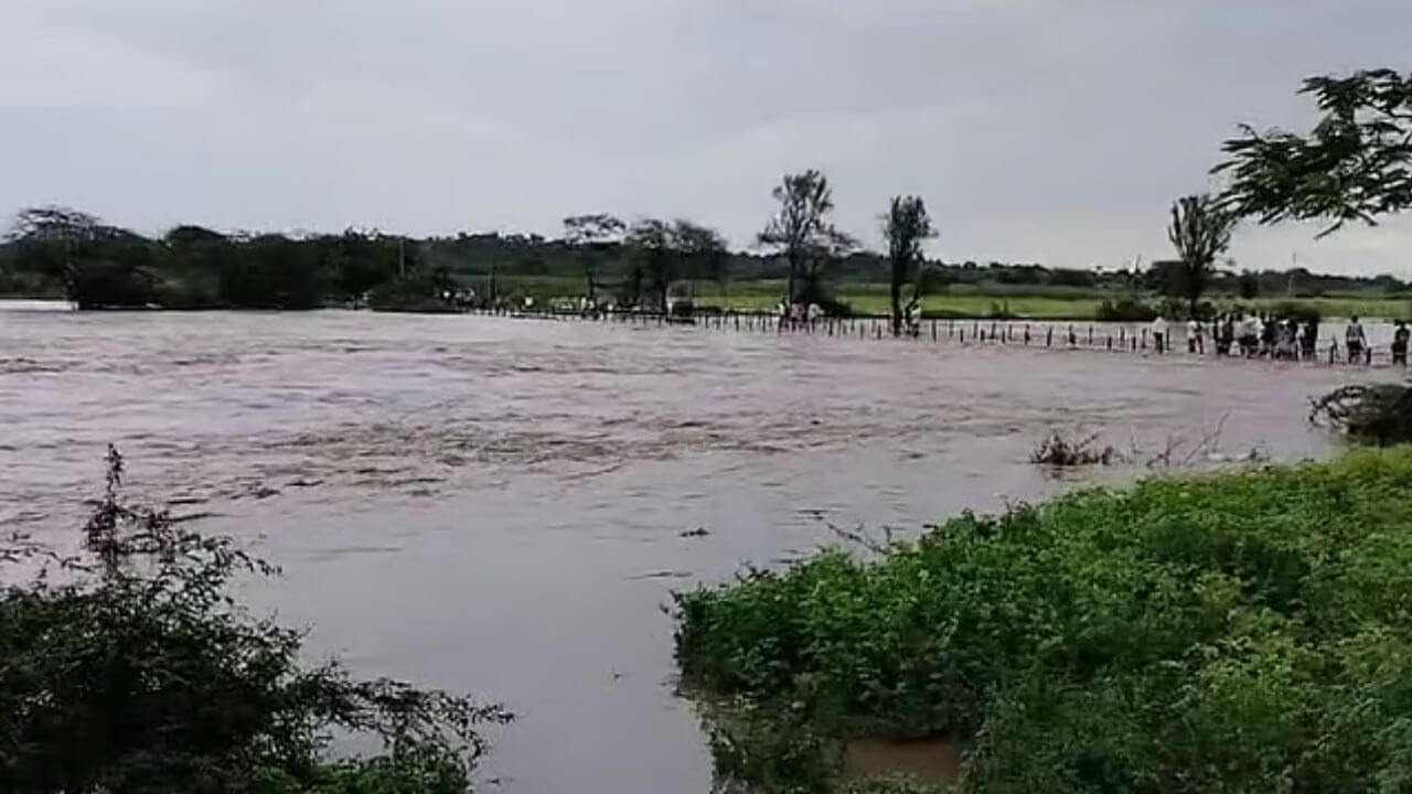 महाराष्ट्राच्या पूर्व भागात मुसळधार पावसाने थैमान घातले आहे. संभाजीनगर, अहिल्यानगर, बीड, हिंगोली, नांदेड, सोलापूर आणि परभणी जिल्ह्यांमध्ये ढगफुटी सदृश पाऊस झाला. यामुळे अनेक नद्यांना पूर आला असून, गोदावरी, दुधना, पूर्णा आणि सरस्वती नद्या दुथडी भरून वाहत आहेत. चारनेर पूल पाण्याखाली गेल्याने गावांचा संपर्क तुटला. अहिल्यानगरच्या पाथर्डीतील हनुमानबाग परिसरात पूरस्थिती निर्माण झाली असून, अनेक जनावरं वाहून गेल्याने शेतकऱ्यांचे मोठे नुकसान झाले आहे. बिबेआंबा तलाव ओव्हरफ्लो झाला आहे.