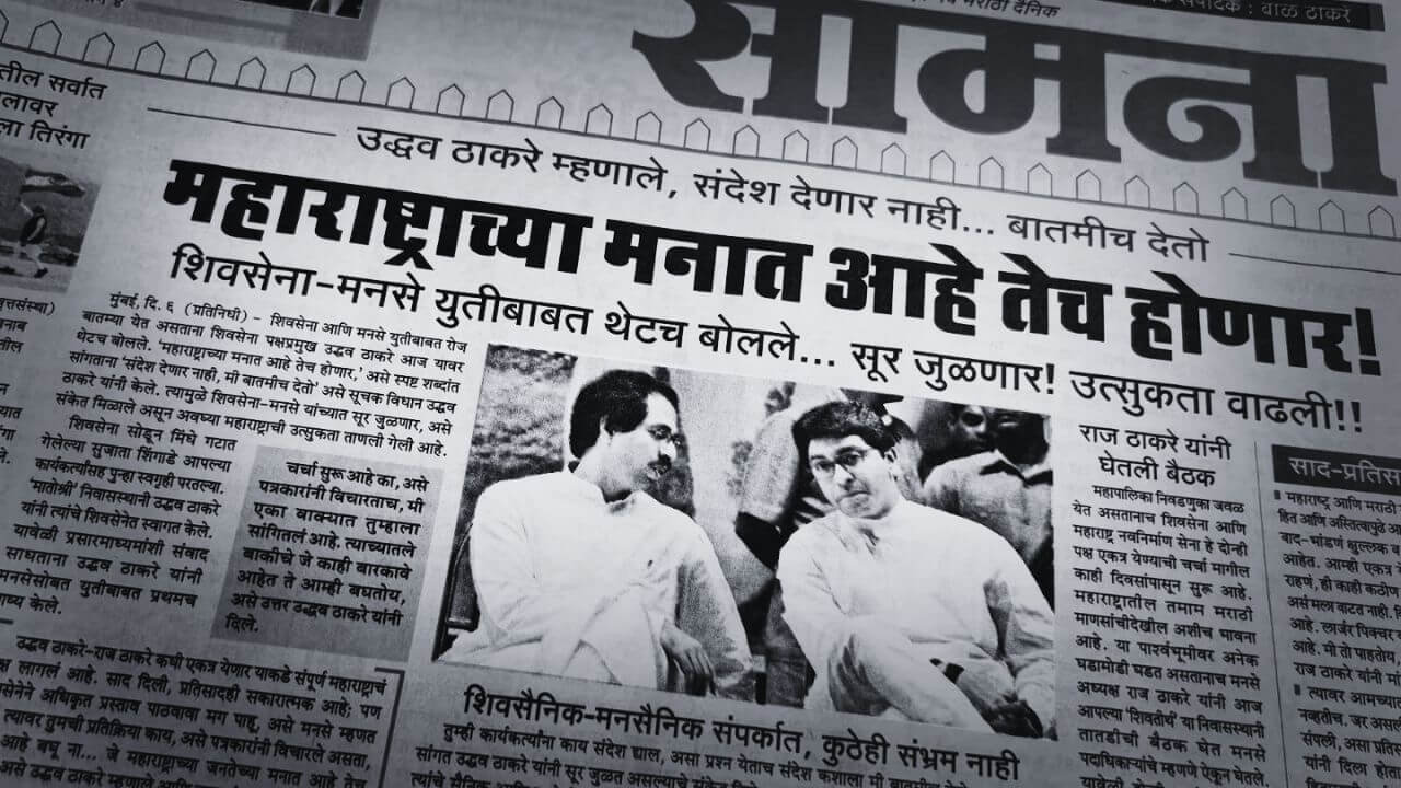 मुंबई- युतीचे संकेत देणार नाही तर थेट बातमीच देईन, राज ठाकरेंसोबत युतीबाबत उद्धव ठाकरे यांनी केलेल्या भाष्यानंतर युतीची चर्चा पुन्हा रंगतेय. त्यातच ठाकरेंच्या शिवसेनेचं मुखपत्र असलेल्या सामनाच्या पहिल्या पानावर उद्धव आणि राज यांचा एकत्र फोटो छापण्यात आलाय. राज आणि उद्धव एकत्र येणार का, या चर्चांना यामुळं उधाण आलंय.