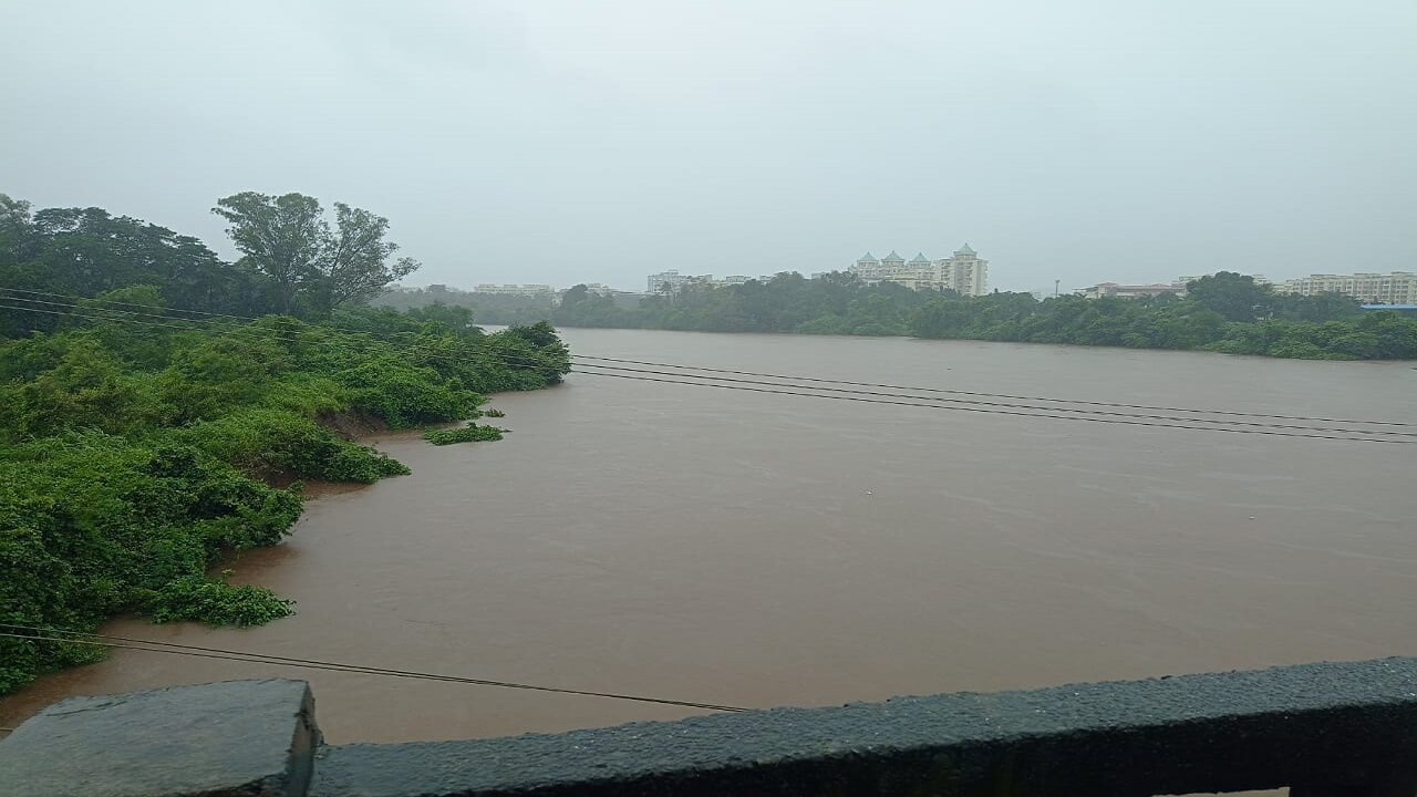 पावसामुळं नदीतील पाण्याचा प्रवाह वाढला…