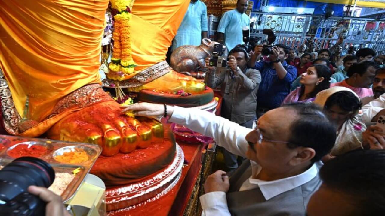 दरम्यान, केंद्रीय आरोग्य आणि कुटुंब कल्याण मंत्री जे.पी. नड्डा यांनी मुख्यमंत्री देवेंद्र फडणवीस यांच्या वर्षा या शासकीय निवासस्थानी भेट देऊन श्री गणरायाचे दर्शन घेतले. यावेळी मुख्यमंत्री फडणवीस यांनी केंद्रीय मंत्री नड्डा यांचे गणेश मूर्ती, शाल, श्रीफळ तसेच पुष्पगुच्छ देऊन स्वागत केले. यावेळी मुख्यमंत्री फडणवीस यांच्या मातोश्री सरीता फडणवीस, पत्नी अमृता फडणवीस तसेच नड्डा यांच्या कुटुंबातील सदस्य व इतर अधिकारी, कर्मचारी उपस्थित होते. दरम्यान, जे.पी. नड्डा यांनी लालबागचा राजाचे दर्शन घेतल्यानंतर त्यांच्या हस्ते गणरायाची पूजा करण्यात आली.