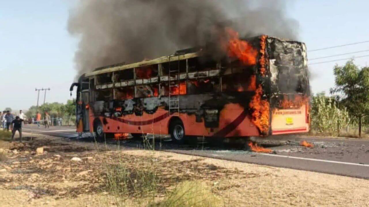 मंगळवारी दुपारी भीषण अपघातात एका खासगी बसमध्ये आग लागून 20 प्रवाशांचा होरपळून मृत्यू झाला, तर 16 प्रवासी गंभीर जखमी झाले आहेत. ही बस सुमारे 57 प्रवाशांना घेऊन जैसलमेर येथून जोधपूरकडे निघाली होती. प्रवास सुरू झाल्यानंतर काही मिनिटांतच बसच्या मागील भागातून धूर येऊ लागला. चालकाने बस रस्त्याच्या कडेला थांबवली, पण क्षणातच बसला भीषण आग लागली आणि ती संपूर्ण बसमध्ये पसरली.