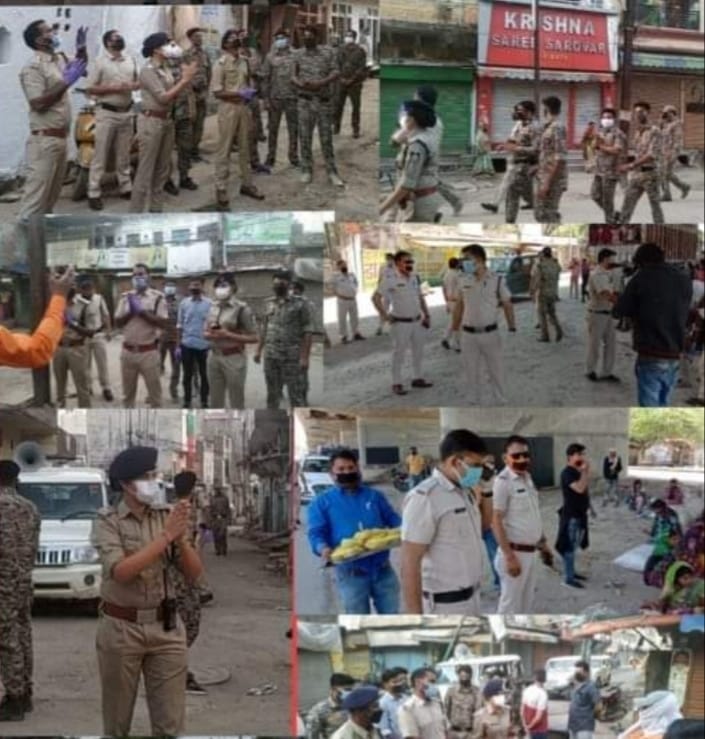 कई जगह पुलिस को हल्का बल प्रयोग करना पड़ रहा है, कहीं धमकाना भी पड़ रहा है और कई जगह पुलिस गांधीगिरी का भी प्रयोग कर रही है। ऐसा ही नजारा मुरैना में देखने को मिला जहां पुलिस ने हाथ जोड़कर मार्च निकाला और गली मोहल्लों में भ्रमण करते हुए हाथ जोड़कर लोगों से सुरक्षित रहने की अपील की। इस दौरान मास्क पहने हुए पुलिसकर्मी, जिनमें महिला पुलिस भी शामिल थीं गली गली गए और लोगों से अपील की कि लॉकडाउन के दौरान सोशल डिस्टेंसिंग का पालन करें, खुद को स्वच्छ रखें, घरों से न निकलें तथा पुलिस की सहायता करें।