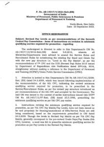 इस आदेश में कहा गया है कि मंत्रालय और डिपार्टमेंट नौकरी में रिक्रूटमेंट और सर्विस रूल्स में बदलाव किया जाएगा। सातवें वेतन आयोग की सिफारिशों के अधीन पे बैंड और ग्रेड को लेवल पे मैट्रिक्स में शामिल होगा यानि अब सरकारी कर्मचारियों का प्रमोशन 7वें वेतन आयोग के पे मैट्रिक्स ( 7th CPC Pay Matrix) और पे लेवल के आधार पर होगा।