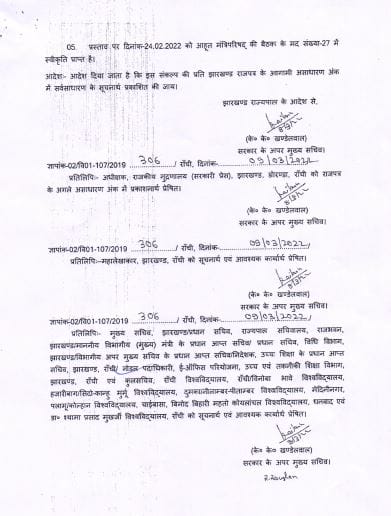 हेमंत सोरेन कैबिनेट बैठक (Cabinet Meeting) में लिए गए फैसले के बाद उच्च व तकनीकी शिक्षा विभाग ने राज्य के सभी विवि के सेवानिवृत्त शिक्षकों व अधिकारियों को सातवें वेतनमान के आधार पर पेंशन का भुगतान करने के संबंध में संकल्प जारी किया है।पेंशन का भुगतान दो सूत्रों के आधार पर किया जायेगा। अब इसका गजट प्रकाशन किया जायेगा।जारी संकल्प के अनुसार, 1 जनवरी 2016 के पूर्व सेवानिवृत्त हुए शिक्षकों और पदाधिकारियों को 7th Pay Commission के अंतर्गत सातवां पुनरीक्षित वेतनमान में पेंशन और पारिवारिक पेंशन का लाभ 1 अप्रैल 2021 के प्रभाव से अनुमान्य होगा।