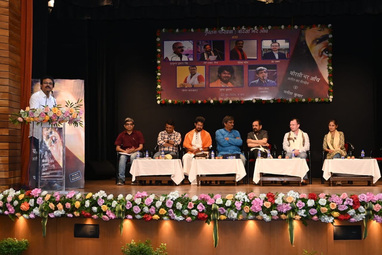 देवी प्रसाद मिश्र जी ने अपनी बात रखते हुए कहा कि ‘साहित्य में हम अपनी वैधता ढूँढते हैं, सामाजिक सांस्कृतिक वैधता…इसके बिना फिर हम अपने जीवन में कुछ भी नहीं है। इस अर्थ में देखो तो यह किताब एक स्ट्रैटेजिक संरचना सी लगती है। एक इकनॉमिक काम लगता है एक सुचेतिक काम लगता है। इसमें बहुत कुछ अनकॉन्शियस है बहुत कुछ अवचेतन से भरा हुआ है जो कि जाहिर है की अवचेतन और स्मृतियों के बीच एक गहरा संबंध देखा गया है। लेकिन यहां जैसे की ये अपने को विखंडित कर रहा हो। एक तरह से रिवर्सल ऑफ पावर स्ट्रक्चर हो रहा हो कि दरअसल हमारे मुख्य भूमि मानो भूमि क्या है…और मूलतः ये एक जो बुनियादी मार्मिकता है उसके पावर स्ट्रक्चर की जो लेयर है उसको मिटा नहीं सकती और इस तरह से दारिद्रय की ओर जाना अपने को मुक्त करना है इस पूरे पैराफरनेलिया से… हो सकता है इतने स्थूल तरीके से इस किताब में ना सोचा गया हो लेकिन लगता है शक्ति संरक्षण को लेकर शायद पश्चात है कोई जो इसे अतीत की ओर ले जाता है यह जाहिर करने के लिए की दरअसल मैं ये हूं… एक अमिटता है इसमें… तो यह अपने को इस तरह से उल्लेख करना मात्र अपनी जड़ों की ओर जाने का नॉस्टैल्जिया नहीं है बल्कि यह एक आयत बोध है, इस बात को उपलब्ध करने के लिए कि भारत एक इस तरह की विपन्नता, पारस्परिकता, परिवारिकता, कौटुंबिता और इस तरह की आपबीती से बना हुआ है और जो आपबीती है वह परबीती भी है। इस अर्थ में देखें तो यह किताब भारत को, अपने को, अपने परिवेश, समाज को पुनराविशित करने की किताब है। जो की बेहद पठनीय है, उदार है, समावेशी है सूक्तियों से भरी एक कवि की किताब है।’