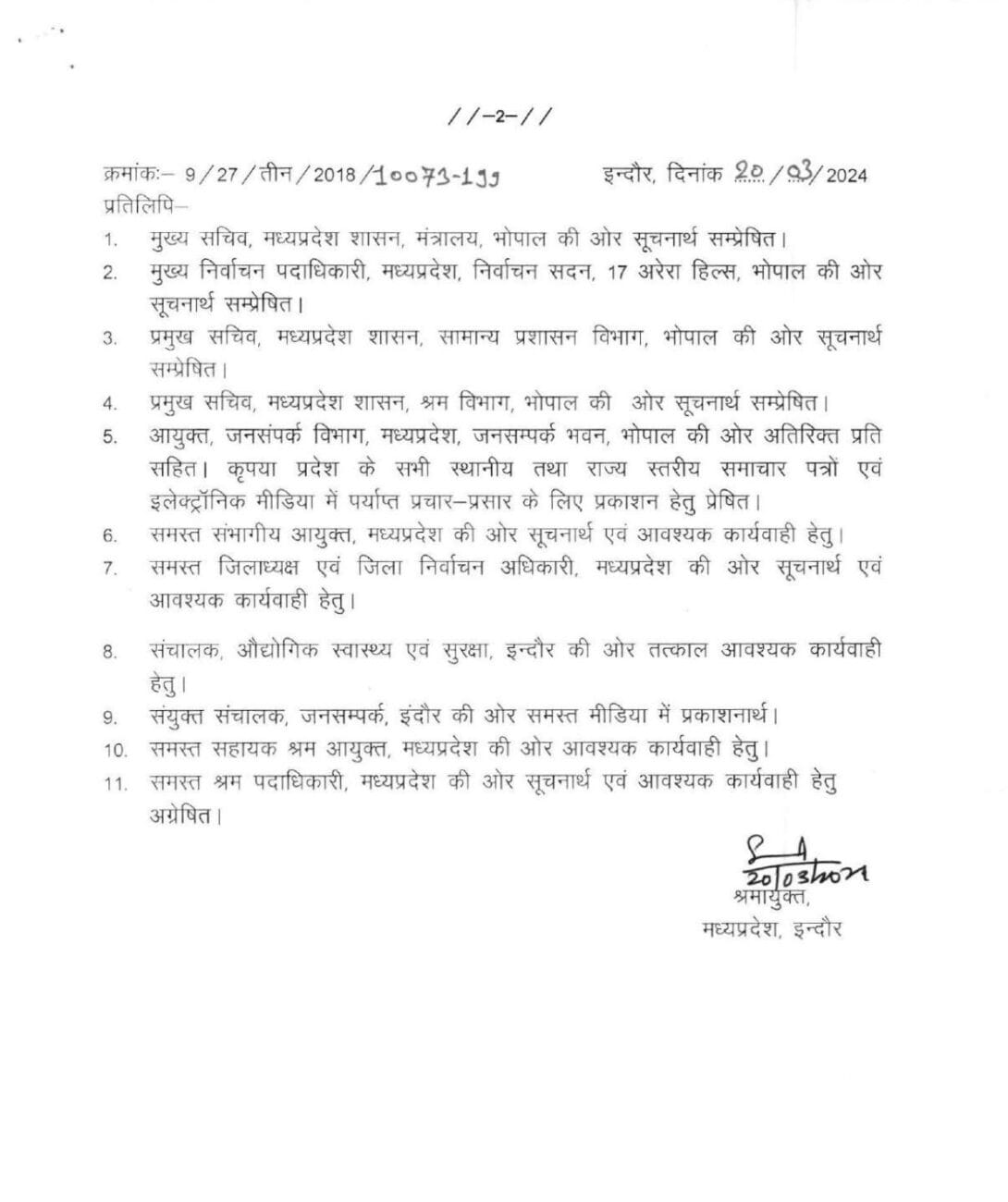 दरअसल, चुनाव आयोग के ऐलान के मुताबिक, इस बार मध्य प्रदेश की 29 लोकसभा सीटों पर चार चरणों (19 अप्रैल ,26 अप्रैल,7 मई और 13 मई ) में चुनाव होंगे, ऐसे में श्रमिकों को मतदान के लिए सवैतनिक अवकाश दिया जाएगा। इसके तहत कोई भी इकाई श्रमिकों को न तो मतदान करने जाने के लिए रोक सकेगी और न ही वेतन काट सकेगी। इसके लिए श्रम विभाग ने सभी कलेक्टरों को दिशानिर्देश जारी कर दिए हैं। यह प्रविधान उन श्रमिकों पर लागू नहीं होगा, जिनकी अनुपस्थिति से कोई खतरा हो।