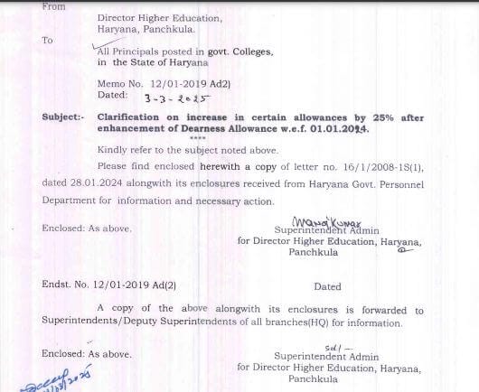 हरियाणा के विश्वविद्यालय-कॉलेज के कर्मचारियों शिक्षकों के लिए खुशखबरी है।राज्य की नायब सिंह सैनी सरकार ने राज्य विश्वविद्यालयों और सरकारी कॉलेजों के शिक्षक व गैर शिक्षक कर्मचारियों के शिक्षा भत्ते में वृद्धि की है।राज्य सरकार ने सरकारी कर्मचारियों की तरह इन कर्मचारियों के शिक्षा भत्ते में 25 फीसदी की वृद्धि की है।