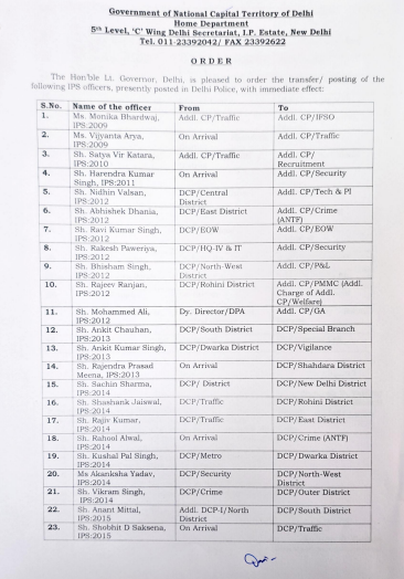 इस बड़े फेरबदल में दिल्ली के लगभग सभी जिलों के पुलिस उपायुक्त (डीसीपी) प्रभावित हुए हैं। नई नियुक्तियों की सूची इस प्रकार है: