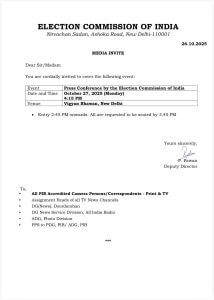 हालांकि, चुनाव आयोग के मीडिया इन्विटेशन में विषय का साफ रूप से स्पष्ट नहीं किया गया था, लेकिन समाचार एजेंसी पीटीआई ने अधिकारिक बयान के हवाले से पुष्टि की है कि यह प्रेस कॉन्फ्रेंस मतदाता सूची के पुनरीक्षण कार्यक्रम पर ही सेन्ट्रलाइजेड होगी।