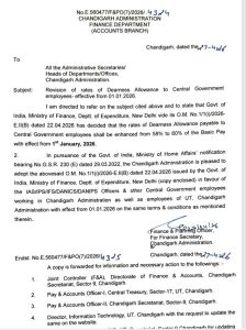 चंडीगढ़ प्रशासन के हजारों कर्मचारियों के लिए खुशखबरी है। केंद्र सरकार द्वारा केंद्रीय कर्मचारियों का महंगाई भत्ता बढ़ाने के बाद अब चंडीगढ़ प्रशासन ने भी उसी तर्ज पर अपने कर्मचारियों का डीए 2 प्रतिशत बढ़ा दिया है। जनवरी 2026 से अब कर्मचारियों को 58 प्रतिशत की जगह 60 प्रतिशत डीए का लाभ मिलेगा।