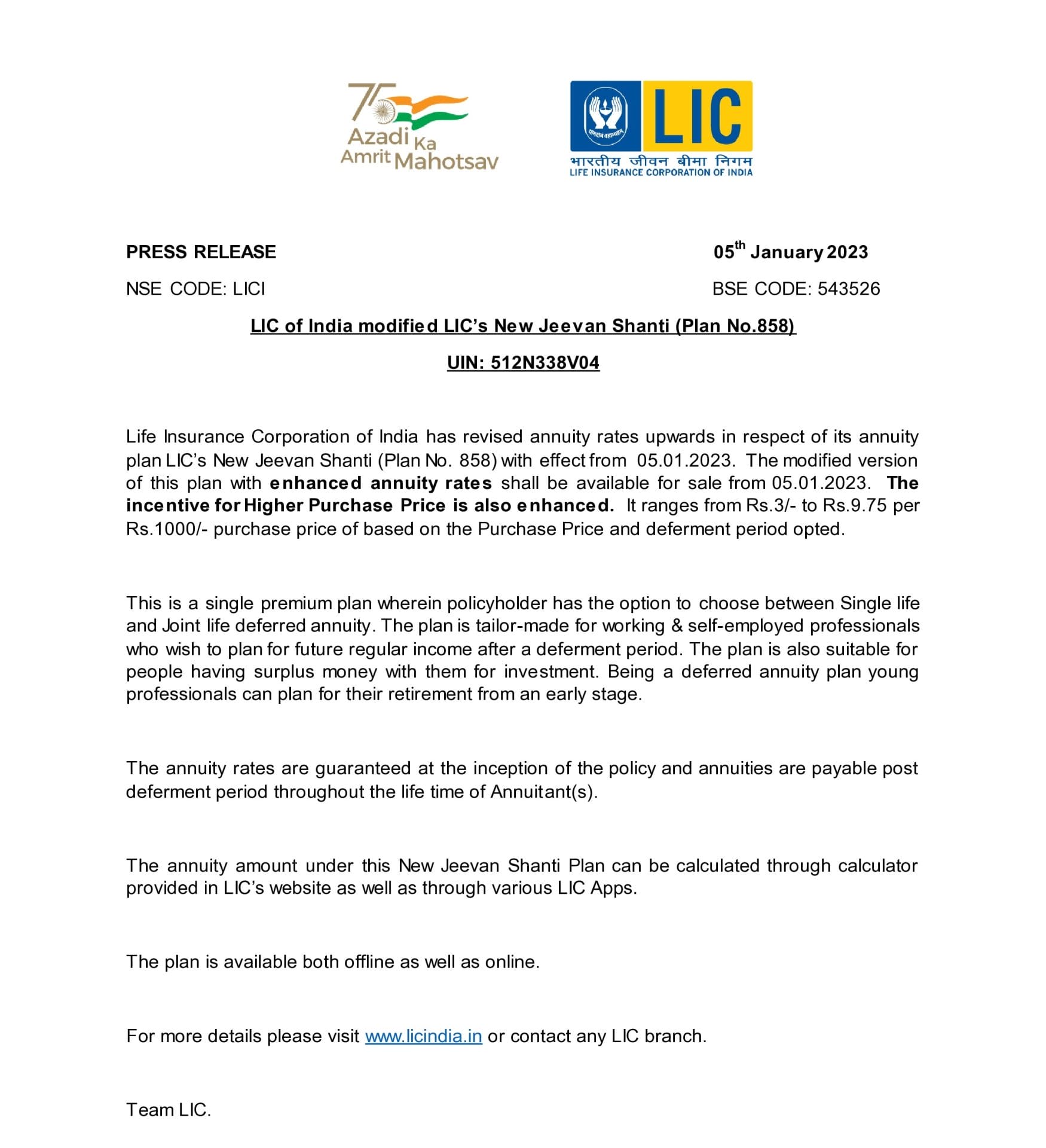 LIC New Jeevan Shanti Plan : एलआईसी में हर कोई इंवेस्ट करके लाखों, करोड़ों रुपए कमाना चाहता है। इसी कड़ी में यदि आप निवेश में ज्यादा मुनाफा कमाना चाहते हैं तो LIC New Jeevan Shanti Plan 2023 आपके लिए एक बेहतर विकल्प साबित हो सकता है। बता दें LIC ने अपने न्यू जीवन शांति प्लान के लिए दरों में संशोधन किया गया है। केवल इतना ही नहीं, 5 जनवरी से इस योजना के लिए आवेदन करने वाले पॉलिसी धारकों को बढ़ी हुई दरों से ब्याज मिलेगा। आइए विस्तार से जानें इस स्कीन के बारे में…