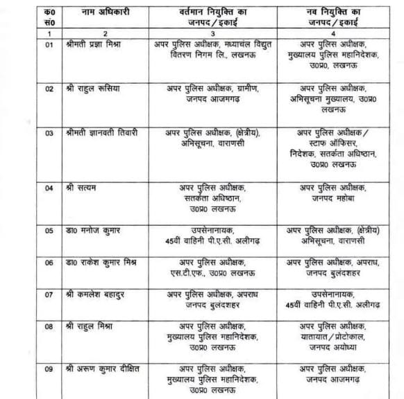 - राहुल मिश्रा – डीजीपी मुख्यालय – एएसपी यातायात/प्रोटोकाल अयोध्या