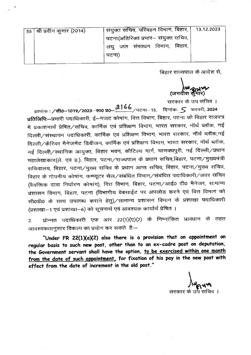 - ब्रेडा के उपनिदेशक सुधांशु कुमार सिंह, जल संसाधन विभाग के संयुक्त सचिव संजीव कुमार सिन्हा सहित अन्य इस पदाधिकारियों को प्रोन्नत किया गया है।