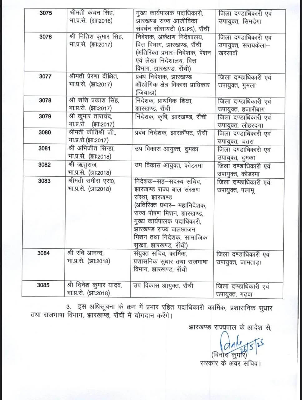 - आईएएस कुमार ताराचंद को लोहरदगा का उपायुक्त।