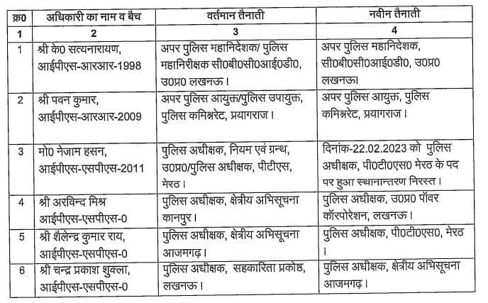 UP IAS IPS Transfer News : उत्तर प्रदेश में एक बार फिर बड़ा प्रशासनिक फेरबदल किया गया है। योगी आदित्यनाथ सरकार द्वारा देर रात 6 आईएएस और 15 आईपीएस अधिकारियों के तबादले किए गए है। कई जिलों के एसपी को बदला गया है। इस संबंध में कार्मिक विभाग और गृह विभाग ने आदेश भी जारी कर दिए है।