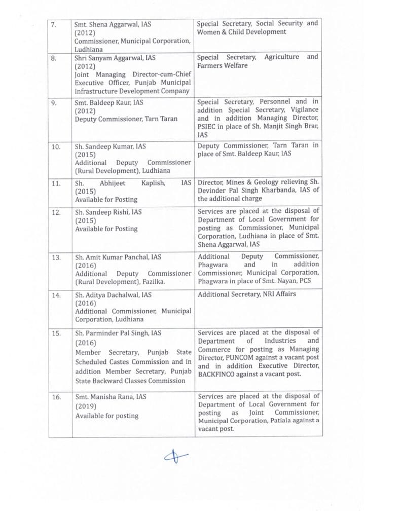 - जबकि संदीप ऋषि को नगर निगम लुधियाना का कमिश्नर नियुक्त किया गया है