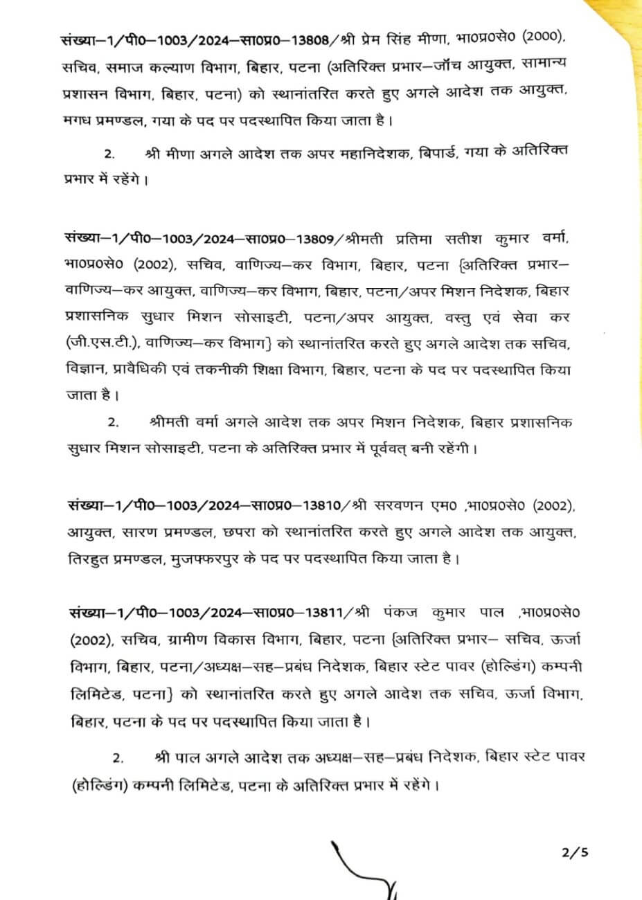 - प्रेम सिंह मीणा को अगले आदेश तक मगध प्रमंडल का आयुक्त ।