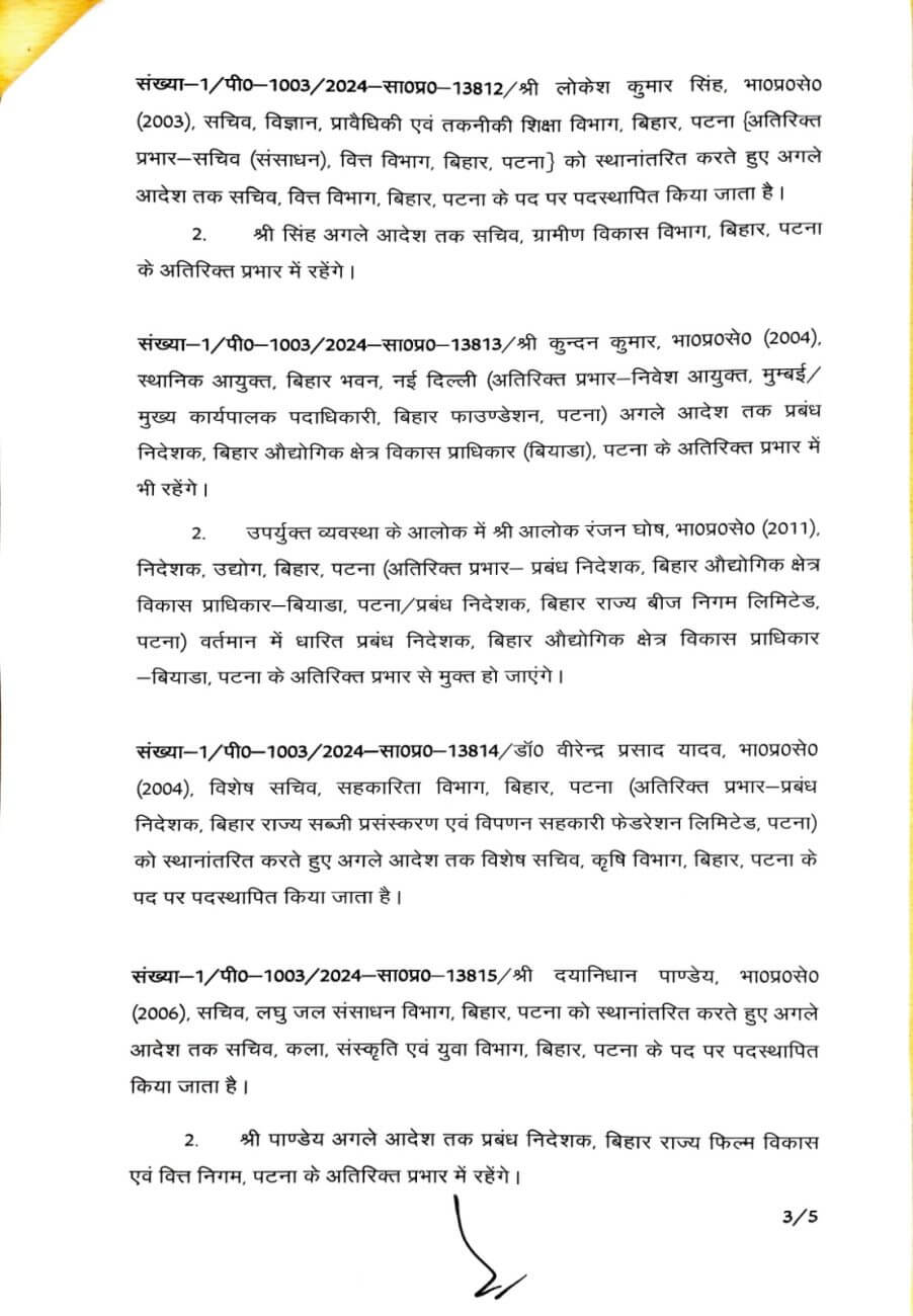 - कुंदन कुमार प्रबंध निदेशक बिहार औद्योगिक क्षेत्र प्राधिकार का अतिरिक्त प्रभार ।