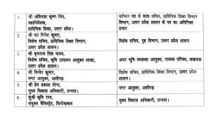 ए. दिनेश कुमार, विशेष सचिव, प्राविधिक शिक्षा विभाग, यूपी को विशेष सचिव, गृह विभाग पद पर नियुक्त किया गया है। बृजराज सिंह यादव को अपर भूमि व्यवस्था आयुक्त, राजस्व परिषद, लखनऊ पद पर भेजा गया है। इससे पहले विशेष सचिव, कृषि उत्पादन आयुक्त शाखा, यूपी पद की जिम्मेदारी संभाल रहे थे।