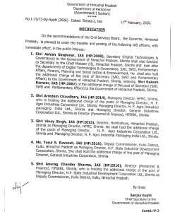 हिमाचल प्रदेश में इन आईएएस अफसरों को भी मिला नया पदभार